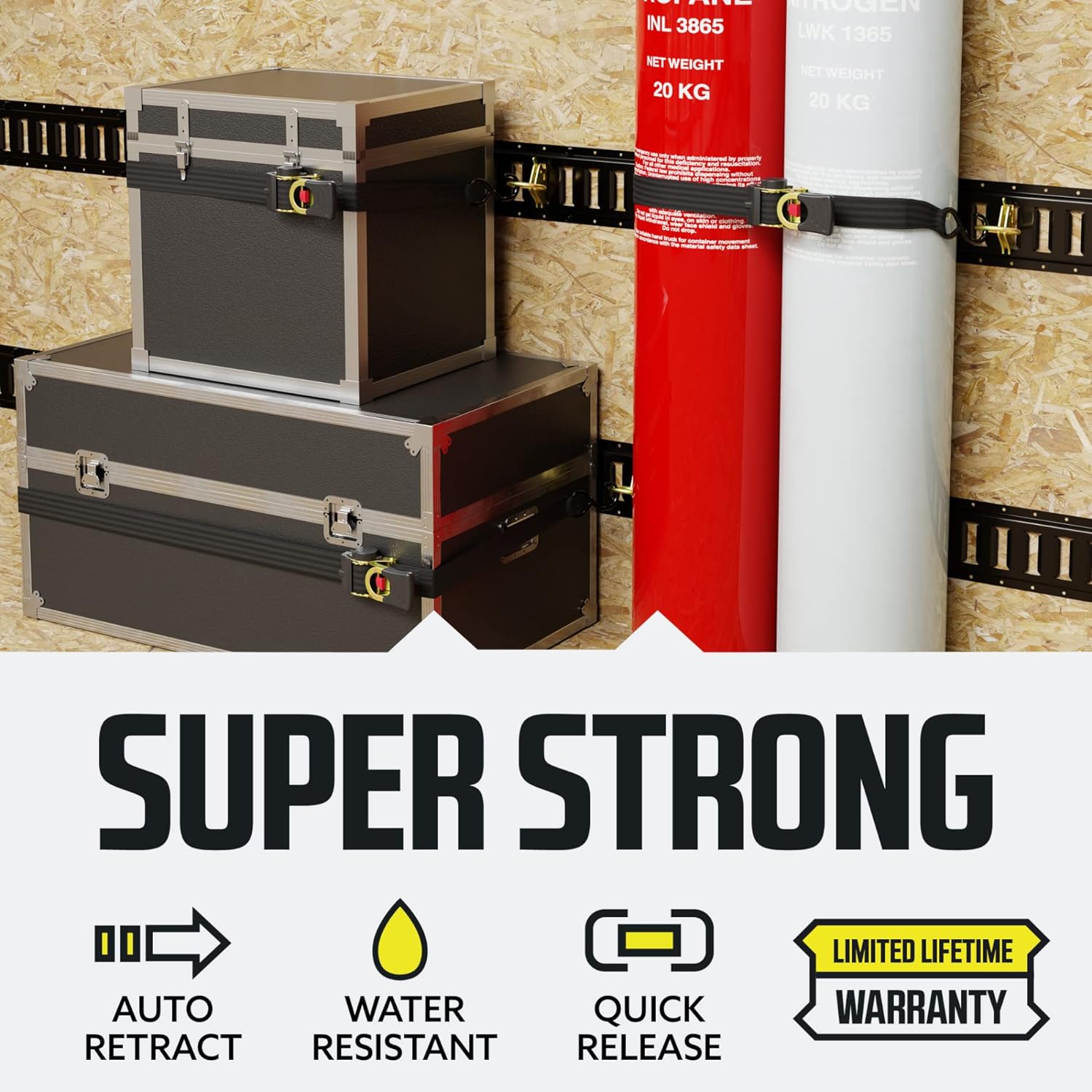 No ones got time to stuff around. The Auto-retract ratchet straps with convenient S-hooks gets any job done in a snap. Tying down a load on the roof rack? No help? No problem! Extend, latch, tighten, and release with ease.