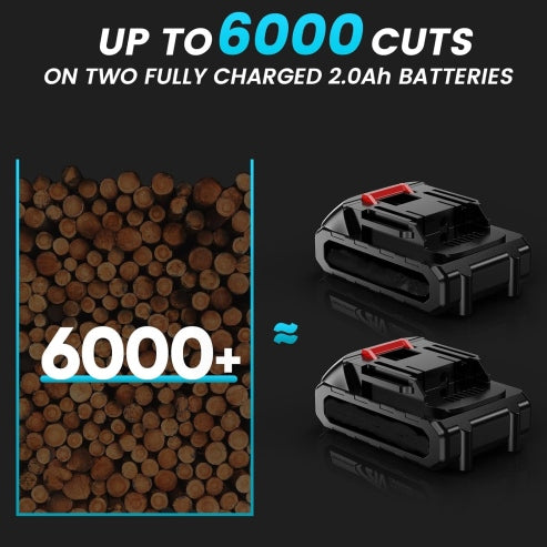 ✅【2*2.0ah Battery.No Break-off Anymore】 Our electric pruning shears come with two 2.0ah batteries and a fast charger. Each charge provides 6-8 hours of working time. allowing you to cut approximately 6000 branches. With the advantage of having two batteries. you can work non-stop in your gardening without worrying about battery issues.