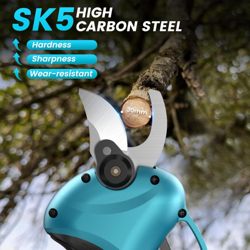 ✅【Sk5 High Carbon Blade and Brushless Motor】Our pruning shears are equipped with 2 sets of SK5 high carbon blades (one installed) and an upgraded brushless motor. Compared with ordinary blades. SK5 has higher hardness and better wear resistance. which can support you to cut harder branches without worrying about damaging the blades. It is combined with an upgraded brushless motor. greatly improving the efficiency of the electric branch scissors for gardening.