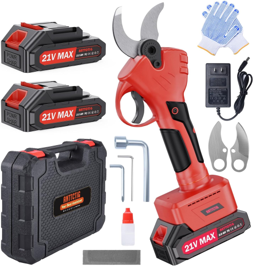 🎁【What You Will Get】Cordless Power Pruner*1;2.0Ah Battery*2;Charger*1;Replacement Blades*1;Gloves*1;Carrying Bags*1;Wrench Set*1;Sharpener*1;User Manual*1;If you have any questions or concerns. please don't hesitate to contact us. We are here to support you throughout your gardening journey.