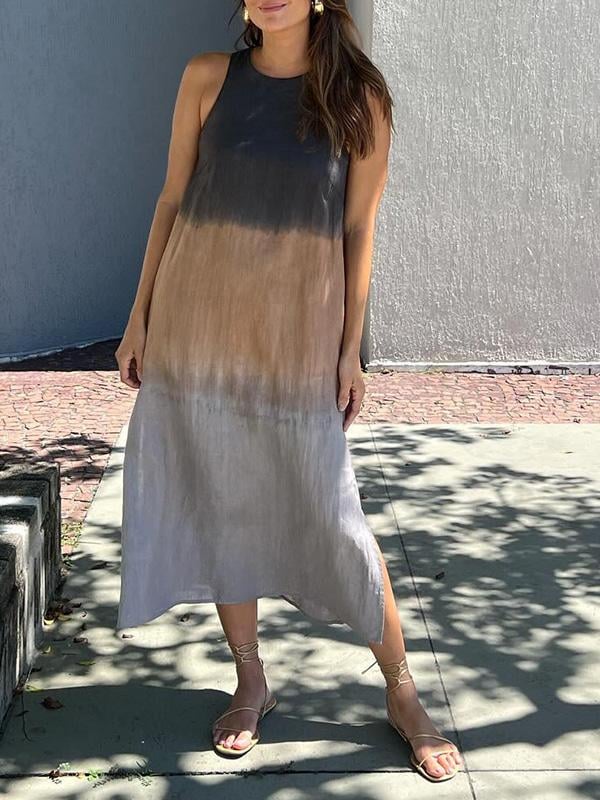 Casual cotton and linen slit gradient tie-dye long dress(buy 2 free shipping)