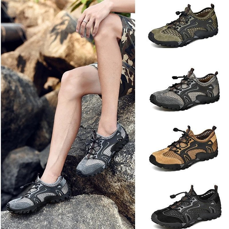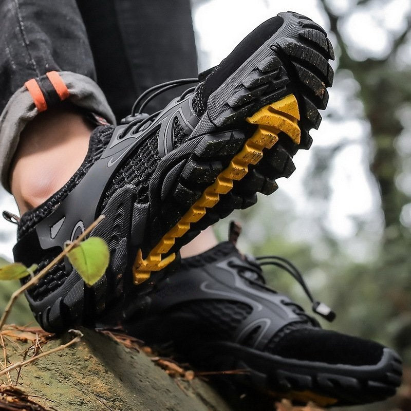 Stay dry with our mesh materials. They're fully water-resistant with holes designed to drain water with every step. Traverse rivers & creeks comfortably.